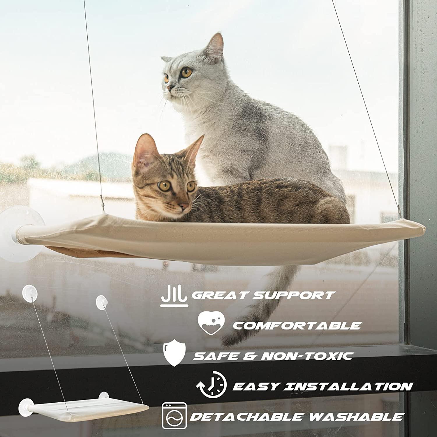 FOR full Suction powers:soak suction cups in hot water for 3 minutes to soften them.Clean the window with wet wepes.Dry the suction cups to slightly damp.Press firmly to squeeze out the air. Easy to clean: Cover easily comes off and can easily be cleaned by HAND WASHING. Easy Install: The space saving cat window perch can be set up and removed in seconds onto your window glass with the 4 big suction cups. No tools needed! Please NOTE: The minimum window size needed for this perch is W 24x H 26 inches. 360° Sunbathing: Basking in this cat window perch, your pet cat avoid moving again and again as long as the sun didn’t go down. Well, it’s also space saving cat bed, without taking up valuable space in your home, your cat can also enjoy a front view of nature while basking. Strong Size : 21 1/4″ x 12 5/8″ x 1 1/2″ ( L x W x H ); stainless steel cord length: 25 1/2″; suction cup diameter: 3.3″; strong enough to hold your cat up to 35lbs. Comfortable material: Breathable Oxford Cloth + Plastic, cat’s body temperature won’t overheat because of this cat window hammock breathability. In winter, add a mattress on this cat perch bed, this window mounted cat bed will be more comfortable.Best Sellers Rank: See Top 100 in Pet Supplies. Target Species: Cat. Care Instructions: Hand Wash Only. Material: PVC, Polyvinyl Chloride. Brand: JOOLOKT. : B0B21GS31V. Manufacturer: JOOLOKT. Date First Available: May 23, 2022. Package Dimensions: 14.02 x 8.11 x 2.91 inches; 1.19 Pounds.