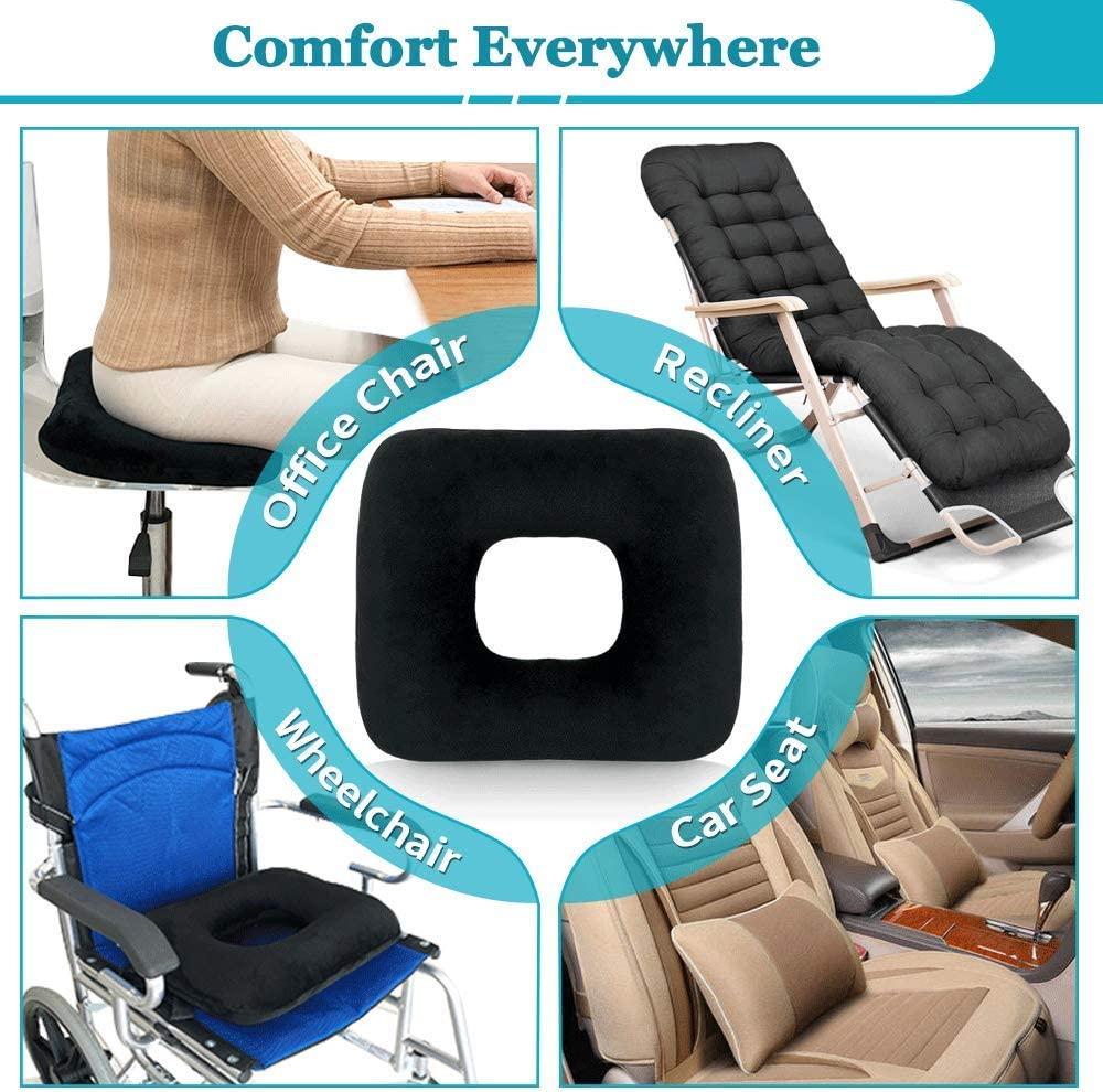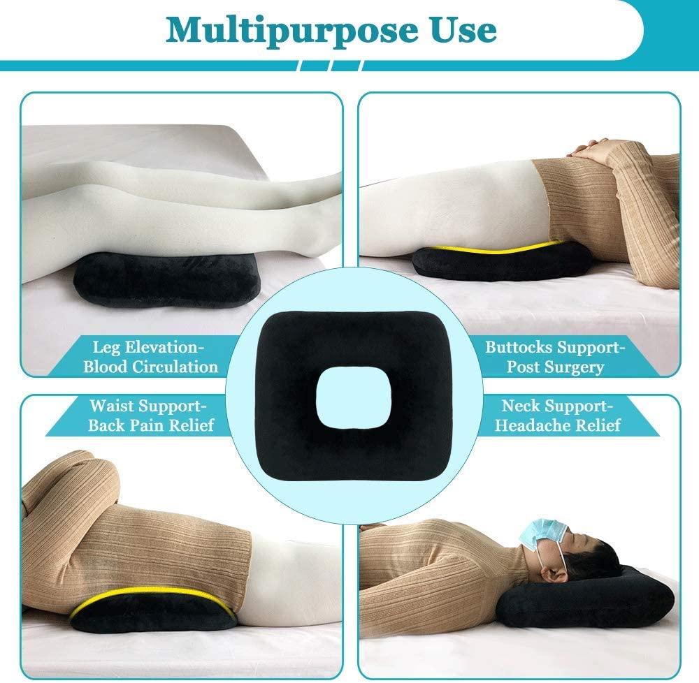Easy to Carry-Workable with your office chair, home seat, car seat, wheelchair, airplane, train, bed.Dimension: 15″ * 13″ * 3.5″ ? How to clean:Recommend hand wash for that pillow stitches might split while spinning dry by machine.If you need machine wash, please put pillow into washing bag, use mild detergent, advised water temperature is not above 30 degree Celsius. Wash separately, gentle circle for spin dry, tumble dry low. Do not bleach. Do not iron. Body Pillow-Good to use as body pillow, you can use to lift your hip, head, neck,legs, ankles on bed or sleep face down on the hollow of pillow. Bed Sore Cushions-The hollow of butt pillows for sitting after surgery or pressure relief, help to keep your wound away from touching any surface of chair or bed, relieve the symptom of pain. Butt Pillows for Sitting-Widened force area of seat cushion, able to bare weight up to 200 lbs, unloads the pressure for sitting when suffering from back pain, tailbone pain, lumbar pain , leg pain , hip pain or any low back nerve pain, and help recovery from hemorrhoid, prostatitis ,sciatica, ischial bursitis, anal fissure, postpartum, post surgery, bed sore. Donut Pillows- Rectangle hollow design with premium quality PP filling for optimal support, will not flat like inflatable pillow or other hemmoroid cushions. Thick firm cushion gently lifts you up from seat chairs, evens the pressure of buttocks, pelvic and thighs.