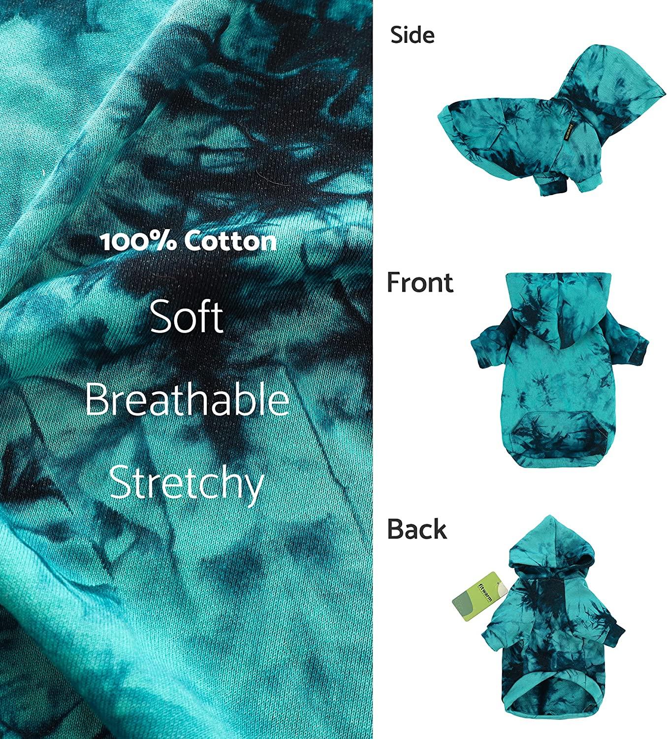 Ribbed elastic leg openings for added comfort, discreet hole at the back for leash attachment. Tie dye pullover sweatshirt looks great pairing with special design pocket. Easy on and off in pullover style, cut higher in the belly for easy potty breaks. This tie-dye hoodie is a great choice for winter! Tie-dye and hoodie elements can exude pet’s vitality. Comfortable fabric, essential for keeping warm in autumn and winter!. Made of 100% cotton, strechy and super friendly to sensitive skin, perfect to protect the skin of your pet. DO NOT fit any medium or large dog breeds. Please priority follw the chest size. Size Large, fits 14″ back, 18″ chest. Recommended for Spaniel Westie, Pug, Boston Terrier.Best Sellers Rank: See Top 100 in Pet Supplies. Material: Cotton. Brand: Fitwarm. Breed Recommendation: Autumn. Size: L. Target Species: Dog, Cat. : B09CYQD18Y. Manufacturer: Fitwarm. Date First Available: August 18, 2021. Package Dimensions: 12.33 x 7.92 x 2.05 inches; 4.8 Ounces.
