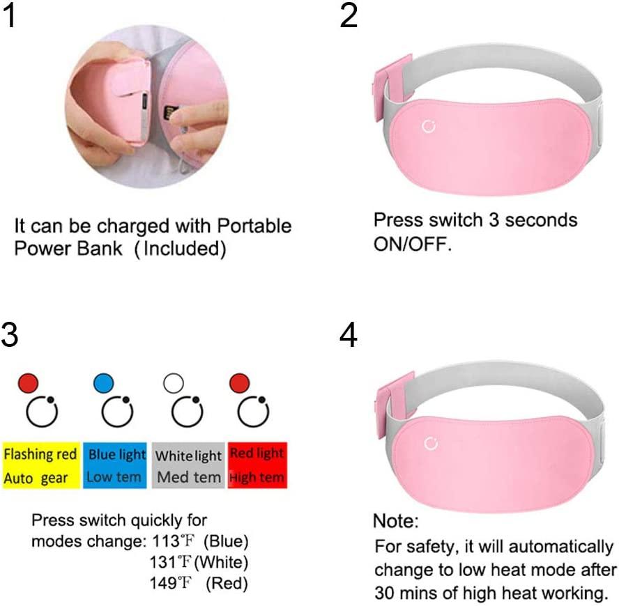 PORTABLE & WASHABLE: Premium soft Lycra fabric, ultra thin to 0.1 inch, breathable, lightweight, great for indoor & outdoor use. Hand Washable, Air drying completely before use. WHAT YOU GET: Heating waist belt,5000mA battery, USB cable, User manual,NOTE:The adapter is not included in our products, you can use the normal adapter.Worry-free 365 days warranty. [WIDELY APPLICATION]: Adjustable Velcro and elastic straps for various waistlines. .It is Suitable for Multiple body parts hot compress, especially great for Waist, Abdomen and more. [includes 5000mA Power Bank]:Not built-in battery. Powered by DC 5V-2A Portable Battery, or low voltage power line, such as laptops, USB adapters, etc., highly suggest to power it with your Power Bank(included 5000 mA Power Bank). [HEATING PERFORMANCE & 100% SAFETY]: Fast warming, no need waiting; 3 Heat Settings for you to customize the intensity of heat; Press switch 3 seconds ON/OFF; Press switch quickly for modes change:149?(Red),131?(White),113?(Blue).For Your Safety, It features accurate intelligent Constant Temperature Control system, and Automatically turn to Low Temperature Setting after 30 mins of working. [ADVANCED HEATING ]: Heating pad features latest Graphene Heating Chip, deliver heat to your body to improve Blood Circulation and Relax the Muscles, greatly relieve pains from Back, Sore Muscles, etc.